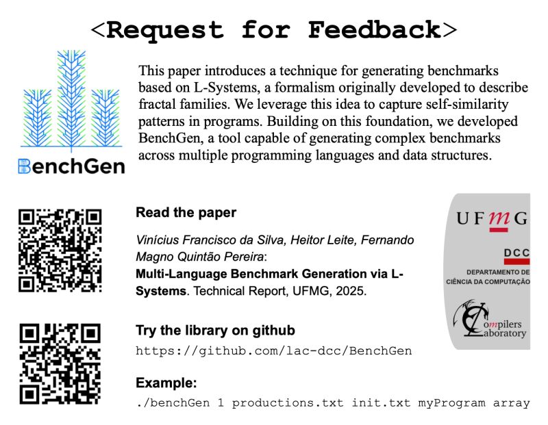 The BenchGen project aims to synthesize programs that are sufficiently expressive to stress-test computing systems, such as operating systems, compiler optimizations, memory allocation libraries and even computer architectures.